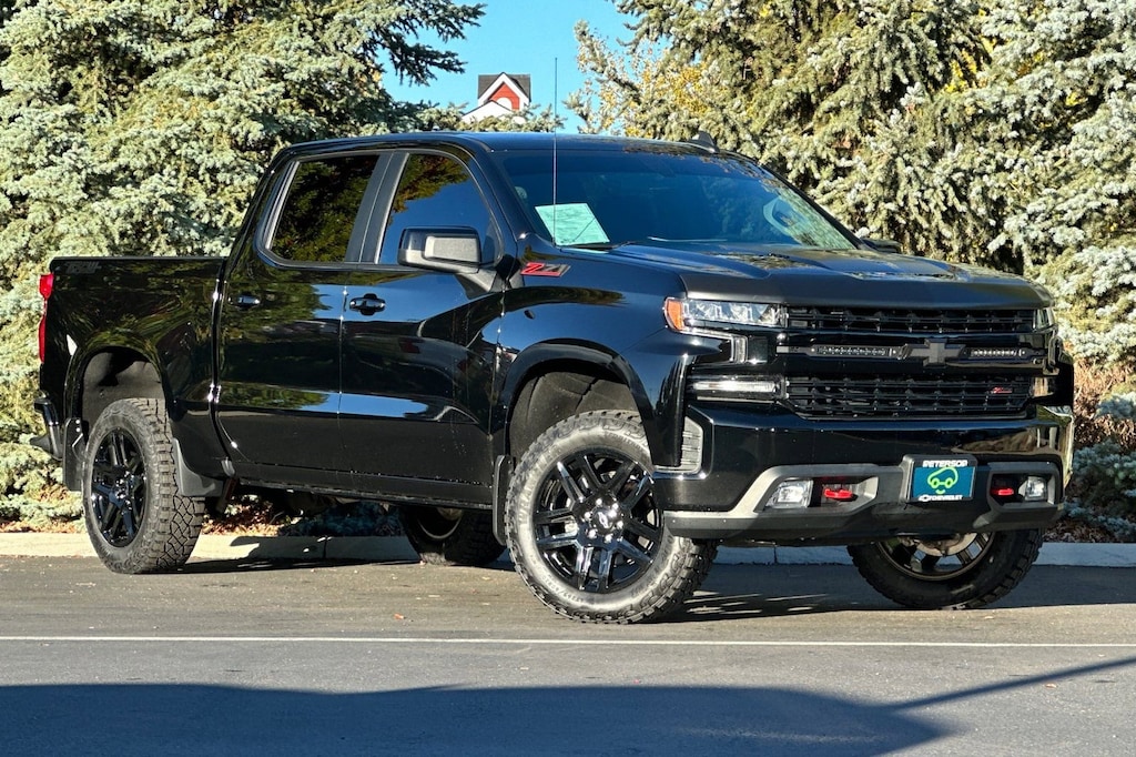 Priced below KBB Fair Purchase Price! Recent Arrival! Odometer is 34432 miles below market average! A tough truck, our One Owner, No Accidents Reported, Miles Below Market Average 2021 Chevrolet Silverado 1500 LT Trail Boss Crew Cab 4X4 with the Bed Protection Package can take charge on the road or off in Black! Motivated by a 6.2 Liter EcoTec3 V8 generating 420hp connected to a 10 Speed Automatic transmission for towing, hauling, and having fun. This Four Wheel Drive truck lives up to its trail-friendly billing with a 2-speed transfer case, a locking rear differential, and a Z71 off-road suspension, and it scores nearly 19mpg on the highway. Designed to show off, our Silverado's design boasts LED lighting, black alloy wheels, red recovery hooks, Dark Essentials Package's black bowties/nameplates,