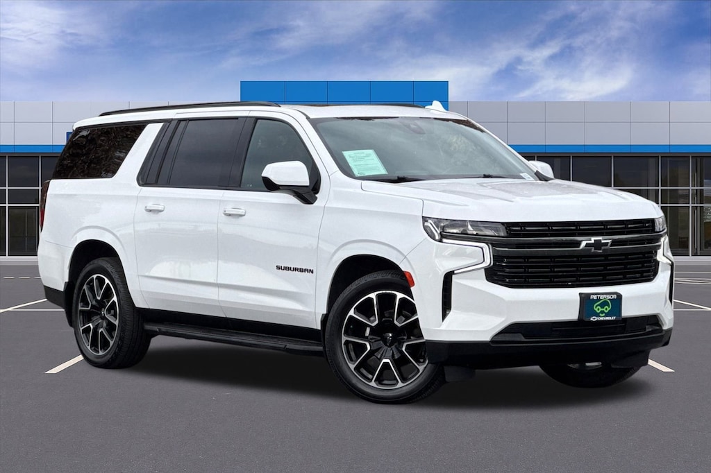 Car Bravo 12 month! See Dealer for Details! Recent Arrival! Styled for the street, our One Owner, No Accidents Reported 2021 Chevrolet Suburban RST 4WD with the Rear Media & Nav Pack really makes an impression in Summit White! Motivated by a mighty 5.3 Liter V8 offering 355hp connected to a robust 10 Speed Automatic transmission to help you cut your biggest challenges down to size. This Four Wheel Drive SUV gets the job done with refined handling thanks to its Premium Smooth Ride suspension, and you'll see nearly 19mpg when cruising the road. Our Suburban has a commanding presence that's complemented by a monochromatic black grille with Black Ice accents plus 22-inch high-gloss black alloy wheels, a sunroof, LED lighting, assist steps, roof rails, and a hands-free tailgate for convenience.