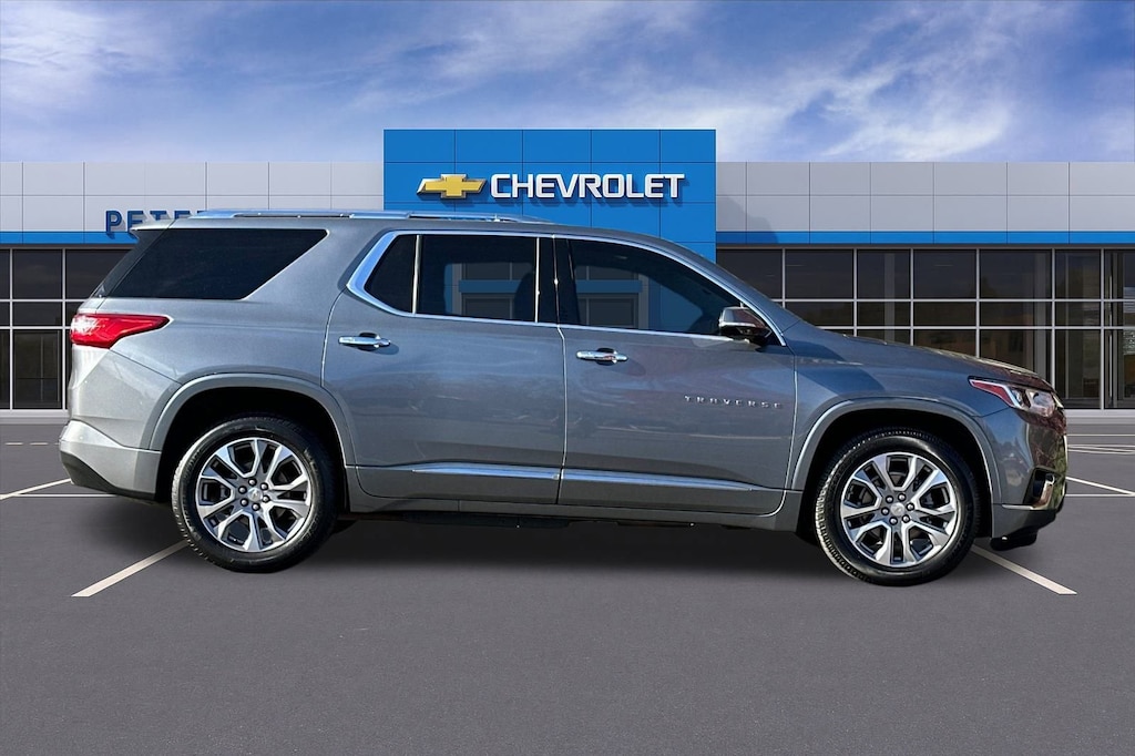 Recent Arrival! Car Bravo Certified! Our One Owner, No Accidents Reported 2021 Chevrolet Traverse Premier AWD puts family comfort first in Satin Steel Metallic! Powered by a 3.6 Liter V6 supplying 310hp, tethered to a 9 Speed Automatic transmission, so that all-around capability is at your command. This All Wheel Drive SUV also rewards you with responsive handling for relaxing road trips, running the kids to school, and even just routine commutes, and it achieves nearly 25mpg on the highway with an inspiring design. Check out the LED lighting, fog lamps, roof rails, dual exhaust outlets, 20-inch machine-faced alloy wheels, sunroof, and a hands-free tailgate that makes loading easy.