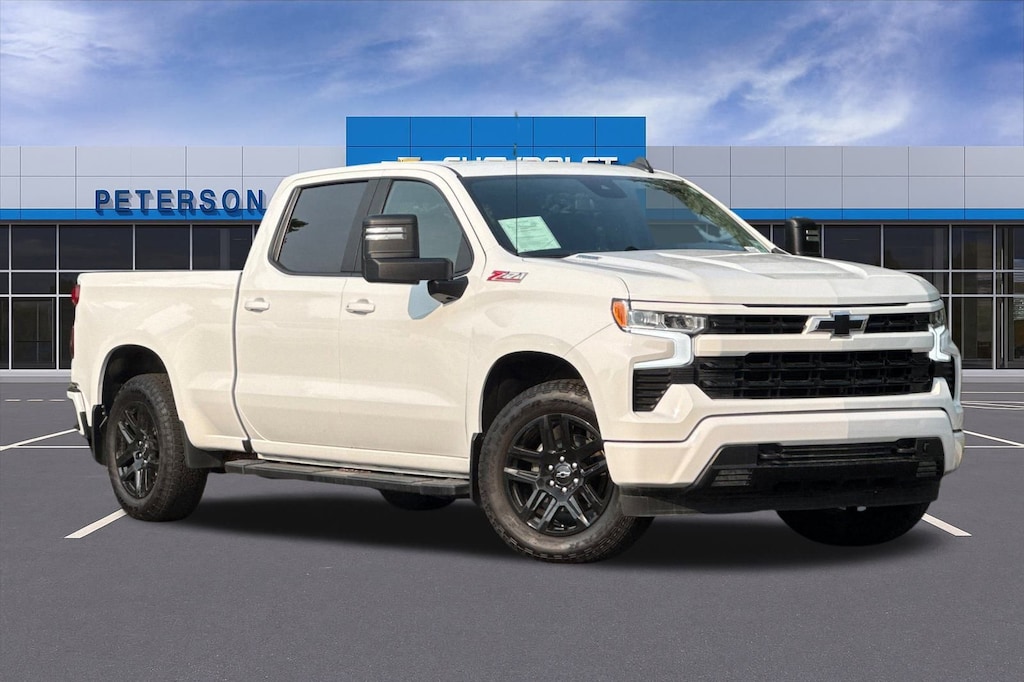 Arrive in style with our No Accidents Reported, Diesel powered White 2023 Chevrolet Silverado 1500 RST Crew Cab 4X4 that is here to show off! Motivated by a TurboCharged 3.0 Liter DuraMax Diesel 6 Cylinder generating 305hp and 495lb-ft of torque to a 10 Speed Automatic transmission for street-savvy performance. This Four Wheel Drive truck is also ready to rock with an auto-locking rear differential and AutoTrac transfer case, and it sees nearly 27mpg on the highway. Silverado styling is on display with LED headlamps, fog lamps, alloy wheels, black recovery hooks, an EZ Lift power lock/release tailgate, a rear CornerStep bumper, cargo-bed lighting, and a trailer hitch with Hitch Guidance.