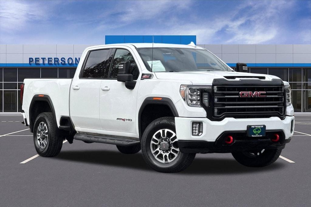Our Diesel-powered 2022 GMC Sierra 3500 AT4 Crew Cab 4X4 with the Gooseneck/5th Wheel Package is ready for tough terrain and tough jobs in Summit White! Motivated by a TurboCharged 6.6 Liter DuraMax Diesel V8 that delivers 445hp and 910lb-ft of torque to a 10 Speed Allison Automatic transmission and ProGrade Trailering System. This Four Wheel Drive truck also has an off-road suspension with Rancho shocks, hill-descent control, and an AutoTrac two-speed transfer case to get you to almost any job site with ease. Standing out is just as simple since our Sierra 3500 shows off the Gooseneck/5th Wheel Package's stamped bed holes w/caps, 7-pin trailer harness, bed view camera, LED lighting, fog lamps, a MultiPro tailgate, skid plates, red recovery hooks, 18-inch alloy wheels, off-road assist steps, power-folding trailer mirrors, and a spray-on bedliner.