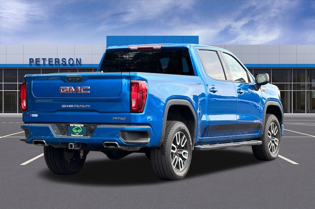 Our No Accidents Reported Blue 2023 GMC Sierra 1500 AT4 Crew Cab Short Box 4X4 is a prime example of premium capability! Motivated by a 6.2 Liter EcoTec3 V8 providing 420hp to a 10 Speed Automatic transmission that's well-engineered for taming trails. This Four Wheel Drive truck also features an off-road suspension, a 2-inch lift, a 2-speed transfer case, and hill-descent control for extreme adventures, plus it returns nearly 20mpg on the highway. A high-strength head-turner, our Sierra comes with LED lighting, fog lamps, red recovery hooks, skid plates, perimeter lighting, a spray-on bed liner, bold alloy wheels, and a GMC MultiPro tailgate.