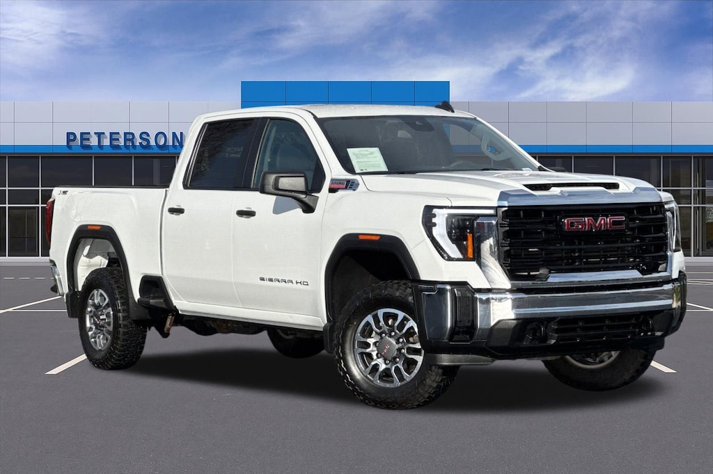 Car Bravo 12 month! See Dealer for Details! Recent Arrival! Dominating and Diesel powered, our White 2024 GMC Sierra 3500 Pro Crew Cab 4X4 with the Convenience Pack helps hard workers be at their best! Motivated by a TurboCharged 6.6 Liter DuraMax Diesel V8 offering 470hp and 975lb-ft of torque to a 10 Speed Allison Automatic transmission to help get more done. Also equipped with an automatic locking rear differential and a 2-speed transfer case for confident handling, our Four Wheel Drive Sierra stands strong with LED lighting, chrome bumpers, front recovery hooks, side bed steps, rear corner steps, Gooseneck/5th Wheel Pack's spray-on Bedliner, X31 Off-Road Package's off-road suspension, twin-tube shocks, hill descent control, skid plates, X31 badging, and our Convenience Pack for LED bed lighting, heated trailering mirrors, and an EZ Lift tailgate.