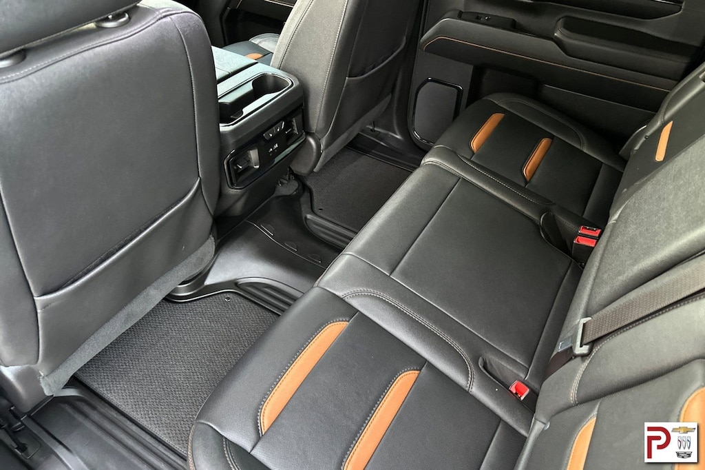 Comfortably commanding details greet you in our AT4 cabin, including heated/ventilated leather power front and heated rear seats, a heated-wrapped steering wheel, dual-zone automatic climate control, cruise control, remote start, and comprehensive connectivity features. A 13.4-inch touchscreen, 12.3-inch driver display, Google Built-In, WiFi compatibility, wireless Android Auto/Apple CarPlay, Bluetooth, and a Bose sound system lead the way.