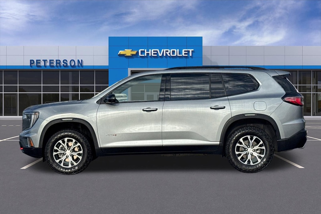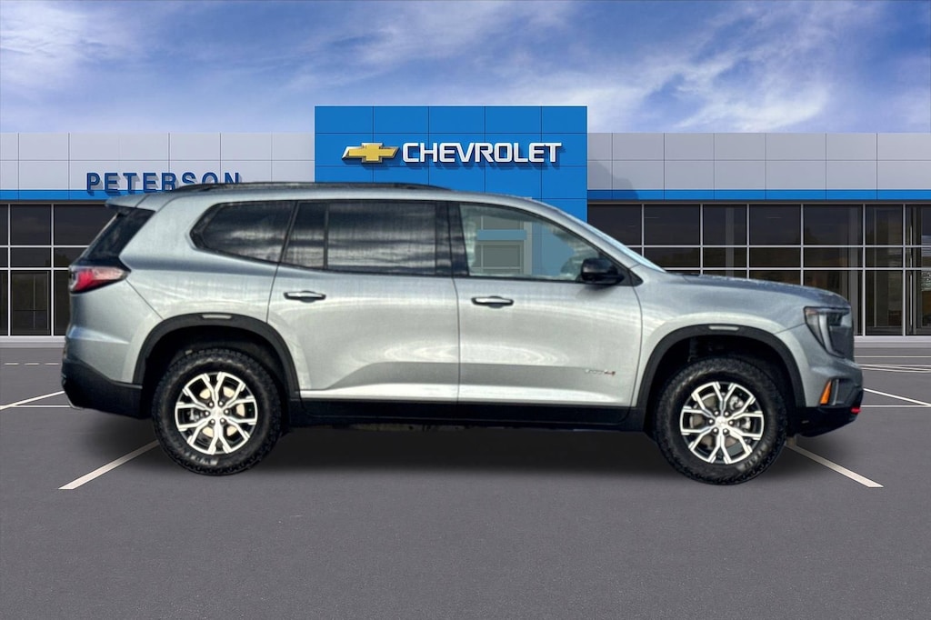 Car Bravo 12 month! See Dealer for Details! Recent Arrival! Command attention with our Gray 2025 GMC Acadia AT4 AWD, and give your family the power it needs to explore your world! Motivated by a TurboCharged 2.5 Liter 4 Cylinder that offers 328hp to an 8 Speed Automatic transmission, so you're well-prepared for adventure. Active Torque Control, hill-descent control, and a performance suspension are standard for stronger trail capability, and this All Wheel Drive SUV scores nearly 26mpg on the highway. Daring dark accents highlight our Acadia exterior with LED lighting, aggressive alloy wheels, gloss-black roof rails, steel skid-plate protection, and a hands-free liftgate.