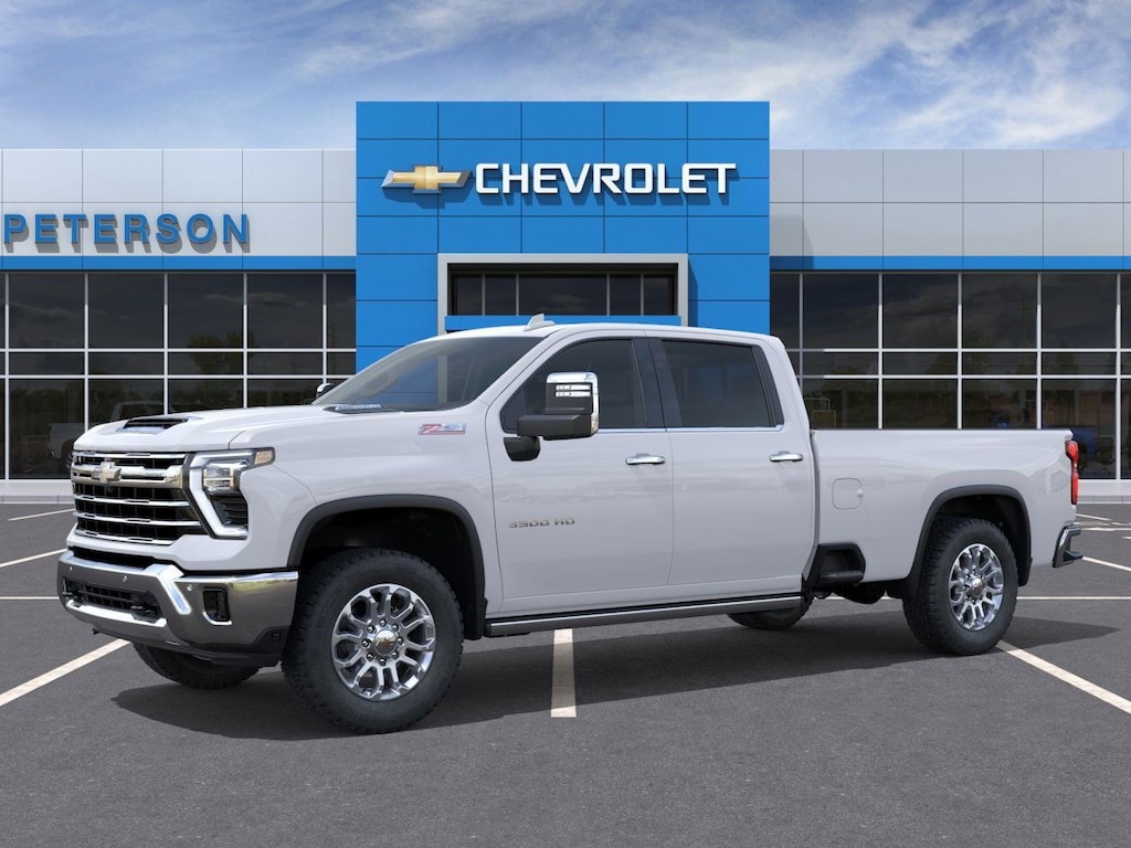 Our Diesel powered 2025 Chevrolet Silverado 3500HD LTZ Crew Cab 4X4 with the Premium Pack is where capability meets comfort in Summit White! Motivated by a TurboCharged 6.6 Liter DuraMax Diesel V8 providing 470hp and 975lb-ft of torque to a 10 Speed Allison Automatic transmission. Towing and hauling are a breeze with this Four Wheel Drive truck, which features Digital Variable Steering for confident command of the miles ahead. Clock in with compelling style from our Silverado's LED lighting, fog lamps, stainless steel beltline moldings, power trailer mirrors, sunroof, spray-on Bedliner, and our Premium Pack for a power tailgate, LED bed lighting, and 20-inch alloy wheels.