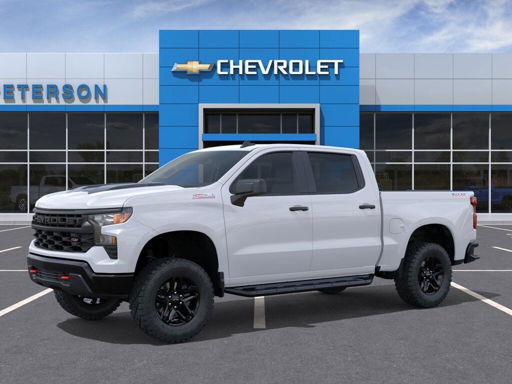 Built tough and ready for action, our 2026 Chevrolet Silverado 1500 Custom Trail Boss Crew Cab 4X4 in Summit White delivers diesel strength, all-terrain grip, and lifted attitude for your off-the-clock escapes. Powered by a TurboCharged 3.0 Liter DuraMax Diesel 6 Cylinder serving up 305hp and 495lb-ft of torque to a 10 Speed Automatic Transmission. This Four Wheel Drive truck also scores nearly 20mpg on the highway, and it loves leaving the pavement behind with its Z71 suspension, 2-inch lift, and locking rear differential. Our Silverado has a tough look, too, with LED lighting, protective skid plates, gloss-black alloy wheels, a power lock/release EZ Lift tailgate, LED bed lighting, a 2-inch receiver hitch, and a bold raised hood.