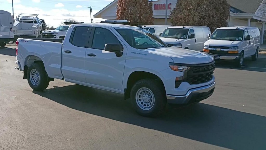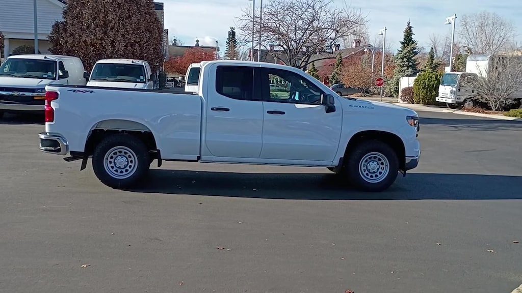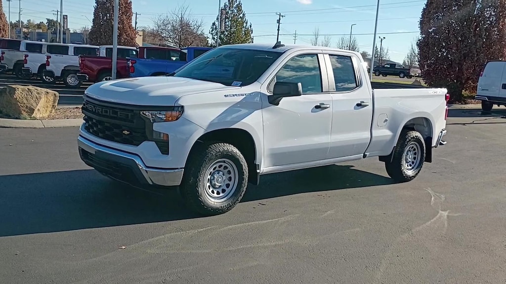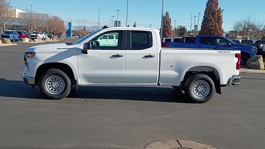 Our 2026 Chevrolet Silverado 1500 W/T Double Cab 4X4 with the Value Package in Summit White offers just what you need in a truck! Powered by a 5.3 Liter V8 offering 355hp to a 10 Speed Automatic transmission with a tow/haul mode to maximize your ability to pull heavy loads. A robust suspension helps handle hard work without missing a beat, and this Four Wheel Drive truck achieves nearly 20mpg on the highway with a bold Chevrolet grille leading the way. Our Silverado also shows off the Value Pack's deep-tinted glass, LED lighting, cab-mounted cargo lamps, heated power mirrors, chrome bumpers, skid plates, and handy tow hooks.