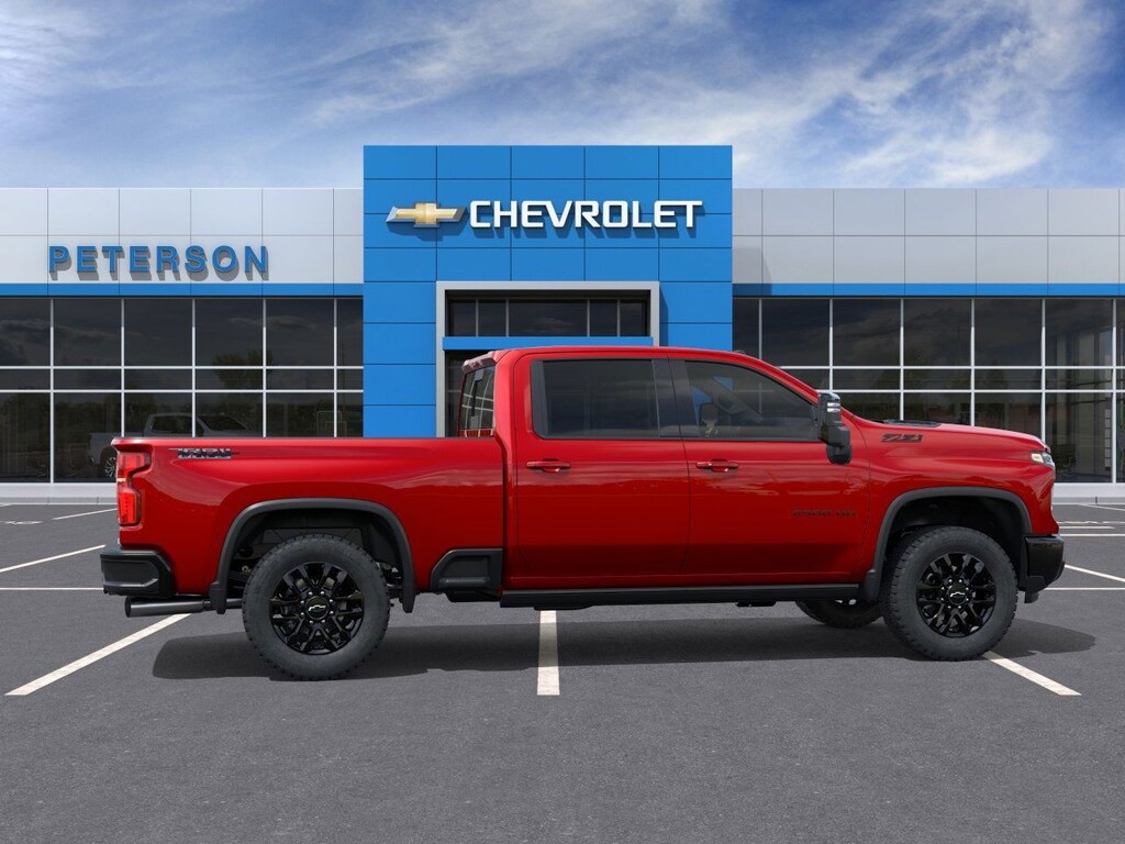 Confident and capable, our Diesel-powered 2026 Chevrolet Silverado 2500HD LTZ Crew Cab 4X4 with the Trail Boss Package is brought to you in Radiant Red Tintcoat! Driven by a TurboCharged 6.6 Liter DuraMax Diesel V8 providing 470hp and 975lb-ft of torque to a 10 Speed Allison Automatic transmission for rewarding strength. Confidence comes standard with the automatic locking rear differential and HD suspension, and this Four Wheel Drive truck makes a fierce impression with its commanding design. Check out our Silverado's Trail Boss Pack's ChevyTec spray-on Bedliner, black grille bar/bowties, body-colored door handles, tow hooks, black bumpers, LED lighting, fog lamps, an EZ Lift power lock/release tailgate, power-folding trailer mirrors, bed steps, power sunroof, and 20-inch high gloss black wheels.