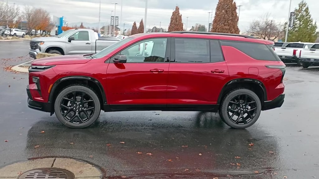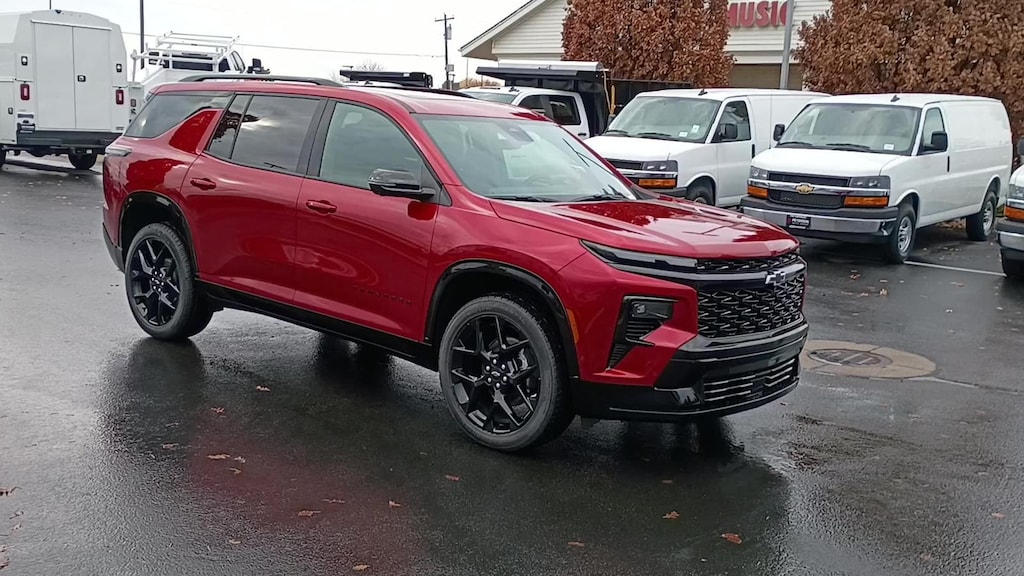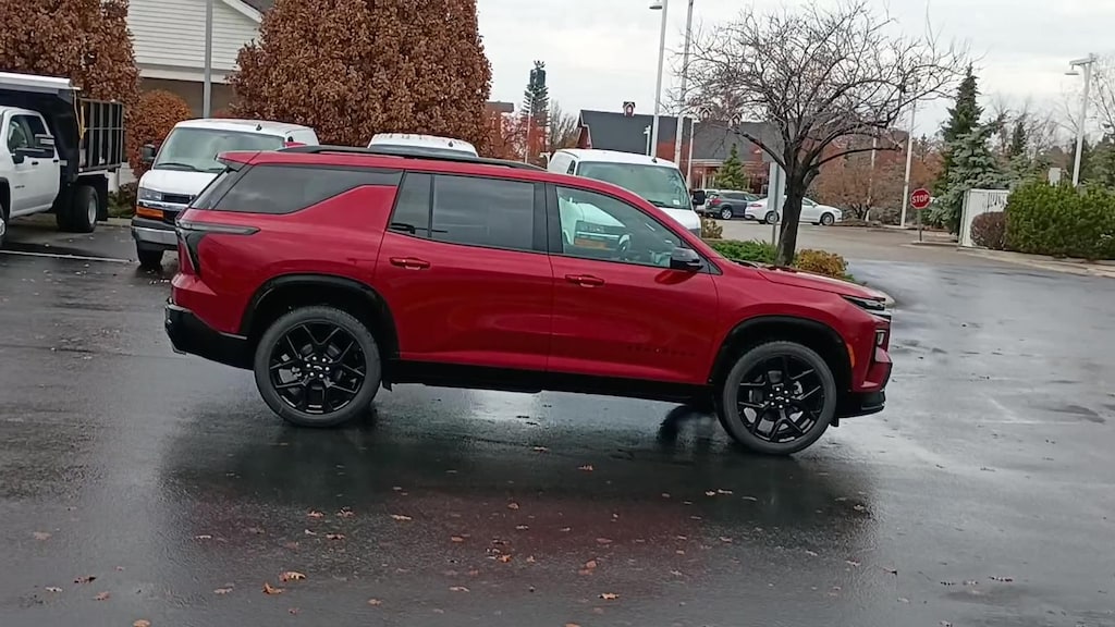 Commanding attention, our 2026 Chevrolet Traverse RS AWD in Radiant Red Tintcoat shows off bold design cues, athletic details, and confident performance that turn heads everywhere you go. Powered by a TurboCharged 2.5 Liter 4 Cylinder delivering 328hp to an 8 Speed Automatic transmission for family-friendly performance. This All Wheel Drive SUV also rewards you with comfortable handling for your active days, and it returns nearly 27mpg on the highway with street-smart style. Check out our Traverse for LED lighting, high-gloss black accents, 22-inch wheels, and the convenience of a hands-free liftgate, factory-installed hitch, a sunroof, and roof rails.