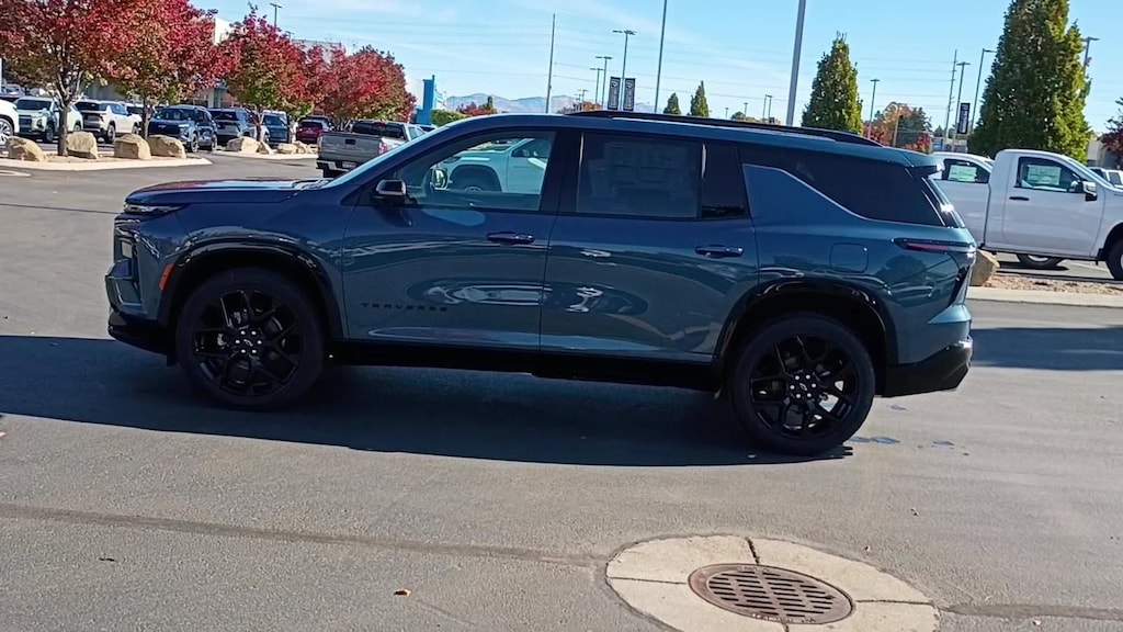 Upgrade to our 2026 Chevrolet Traverse RS AWD in Lakeshore Blue Metallic shows off bold design cues, athletic details, and confident performance that turn heads everywhere you go. Powered by a TurboCharged 2.5 Liter 4 Cylinder delivering 328hp to an 8 Speed Automatic transmission for family-friendly performance. This All Wheel Drive SUV also rewards you with comfortable handling for your active days, and it returns nearly 27mpg on the highway with street-smart style. Check out our Traverse for LED lighting, high-gloss black accents, 22-inch wheels, and the convenience of a hands-free liftgate, factory-installed hitch, a sunroof, and roof rails.
