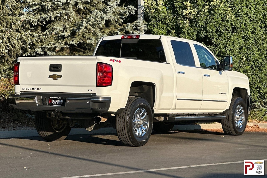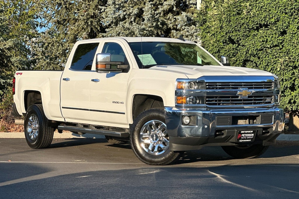 Recent Arrival! Our No Accidents Reported 2015 Chevrolet Silverado 2500HD LTZ Crew Cab 4X4 is presented in eye-catching Summit White. Powered by a TurboCharged 6.6 Liter DuraMax Diesel V8 that offers 397hp and 765lb-ft of torque paired with an HD 6 Speed Automatic transmission for effortless towing. This Four Wheel Drive delivers a massive payload and towing capacity, and with our advanced trailering technologies, you'll appreciate exceptional control and capability on every road. Our handsome Silverado delivers on its promises and is ready to take on the road with an aggressive stance and great-looking chrome accents. Enjoy the heated, power-adjustable mirrors, deep-tinted glass, EZ-lift/lower tailgate, running boards, remote locking tailgate, and remote vehicle start.