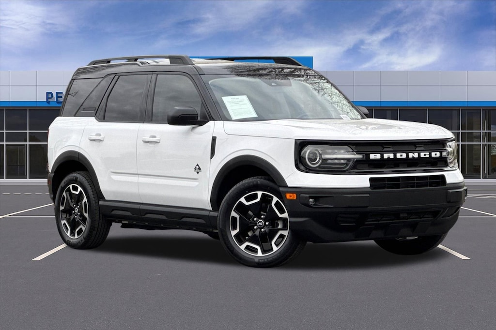 Recent Arrival! Our One Owner, No Accidents Reported White 2021 Ford Bronco Sport Outer Banks 4X4 with the Outer Banks Package takes on the world with technology, toughness, and a heritage-inspired design. Powered by a TurboCharged 1.5 Liter EcoBoost 3 Cylinder supplying 181hp paired to an 8 Speed Automatic transmission that's tuned just for thrill-seekers like you. A Terrain Management System lets you tackle tough conditions with complete confidence, and this Four Wheel Drive SUV also scores nearly 25mpg on the highway with our package that includes a LED lighting, hatch-mounted flood lamps, exclusive Bronco badging, alloy wheels, and flip-up rear glass.