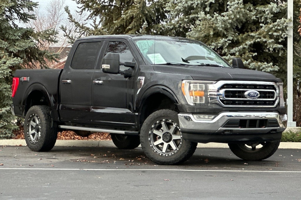 Recent Arrival! Our No Accidents Reported 2022 Ford F-150 XLT SuperCrew 4X4 in Agate Black Metallic is built from the ground up for better trucking! Motivated by a Twin-TurboCharged 3.5 Liter EcoBoost V6 supplying 400hp tethered to a 10 Speed SelectShift Automatic transmission so you can take on your world with rugged capability at your command. This Four Wheel Drive truck also scores nearly 23mpg on the highway, and it matches its muscular performance with an upscale design. Highlights include chrome accents, fog lamps, heated power mirrors, running boards, a power locking tailgate, and bold alloy wheels.