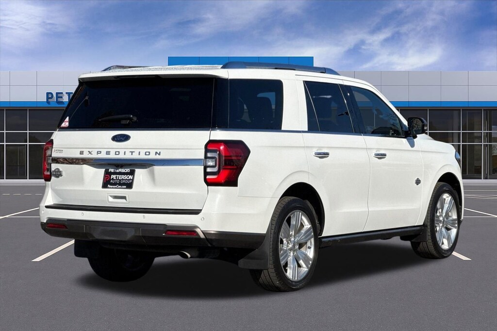 Recent Arrival! At home on the range, our 2023 Ford Expedition King Ranch 4WD with the HD Trailer Tow Pack has a stylish way of getting things done in Star White Metallic Tri-Coat! Powered by a Twin-TurboCharged 3.5 Liter EcoBoost V6 that serves up 400hp to a 10 Speed SelectShift Automatic transmission. This Four Wheel Drive SUV also has responsive handling for adventures ahead, and it achieves nearly 22mpg on the highway. Exterior Expedition highlights include LED lighting, fog lamps, panoramic sunroof, power liftgate, power running boards, and HD Trailer Tow upgrades like a revised rear-axle ratio, Pro Trailer Backup Assist, and 18-inch alloy wheels.