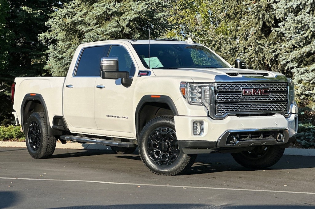 Recent Arrival! Our One Owner, No Accidents Reported, Diesel-driven 2020 GMC Sierra 3500HD Denali Crew Cab 4X4 with the Ultimate Pack in White Frost Tricoat is poised and powerful! Motivated by a TurboCharged 6.6 Liter DuraMax Diesel V8 that offers 445hp and 910lb-ft of torque to a 10 Speed Allison Automatic transmission to make hard work seem easy. Pass and pull with total confidence in this Four Wheel Drive truck that complements its bold look with style and substance. Check out Sierra's digital adaptive steering, off-road suspension, ProGrade Trailering System, an exclusive Denali grille, LED lighting, fog lamps, a spray-on bed liner, chrome assist steps, 20-inch alloy wheels, a MultiPro tailgate, and our Ultimate Pack for a power sunroof.