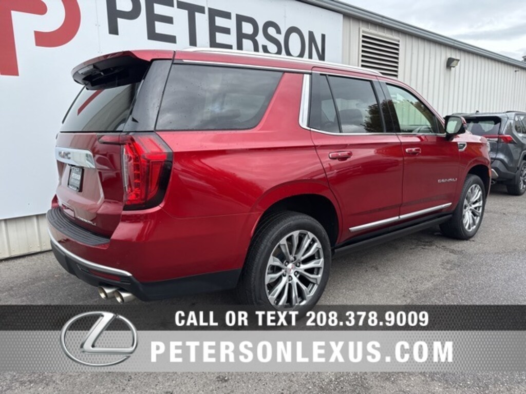 Cayenne Red Tintcoat 2021 GMC Yukon Denali 4WD One Owner, 12-Way Power Seat Adjusters, 15" Diagonal Multi-Color Head-Up Display, 2 Presets For Outside Rearview Mirrors, 3rd Row 60/40 Power-Folding Split-Bench Seat, Adaptive Cruise Control, Advanced Security Package, Advanced Technology Package, Bright Front & Rear Door Sill Plates, Chrome Door Handles w/Body-Color Strip, Denali Premium Package, Dual Exhaust System, Dual-Pane Panoramic Power Sunroof, Enhanced Automatic Emergency Braking, Galvano Bodyside Moldings, Glass Breakage Sensor, Hands-Free Power Programmable Rear Liftgate, HD Surround Vision, Heated & Ventilated Driver & Front Passenger Seats, Heated 2nd Row Outboard Position Seats, Heated Automatic Steering Wheel, Heated Driver & Front Passenger Seats, Hill Descent Control, Inside Rear-View Auto-Dimming Mirror, Inside Rearview Auto-Dimming Rear Camera Mirror, Outside Heated Power-Adjustable Mirrors, Power Release 2nd Row Bucket Seats, Power Tilt & Telescopic Steering Column, Power-Retractable Assist Steps, Preferred Equipment Group 5SA, Rear Camera Mirror Washer, Rear Pedestrian Alert, Safety Alert Seat, Theft-Deterrent Alarm System, Universal Home Remote, Vehicle Inclination Sensor, Vehicle Interior Movement Sensor.