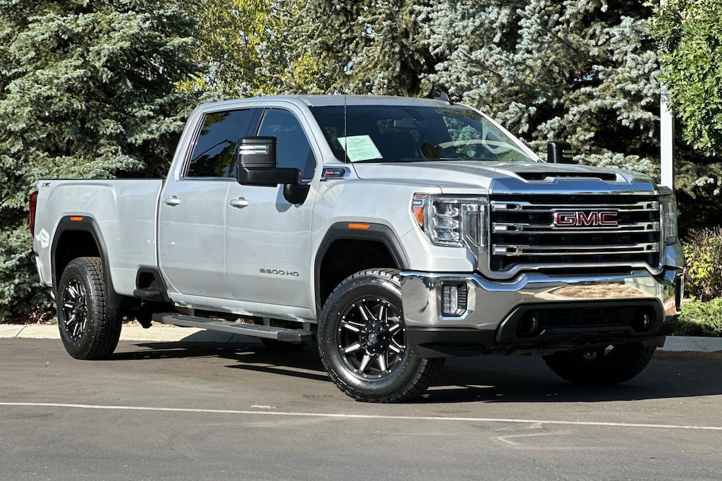 Our No Accidents Reported 2022 GMC Sierra 2500HD SLE Crew Cab 4X4 featuring the X31 Off-Road Package works hard to make your life easier in Quicksilver Metallic. Motivated by a 6.6 Liter V8 delivering 401hp connected to a 6 Speed Heavy-Duty Automatic transmission for top-notch towing and hauling. This Four Wheel Drive truck tackles slippery surfaces with an automatic locking rear differential and a two-speed transfer case. At the same time, our Sierra turns heads with the X31 Off-Road Pack's off-road suspension, hill descent control, skid plates, X31 badging, twin-tube Rancho shocks, LED lighting, front recovery hooks, power trailer mirrors, side bed steps, chrome bumpers with rear CornerSteps, chrome assist steps, Custom alloy wheels, and GMC's amazingly versatile MultiPro tailgate.