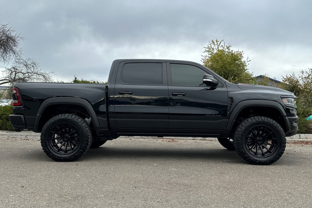 Incredibly powerful, our No Accidents Reported 2023 RAM 1500 TRX Crew Cab 4X4 with the Level 1 Pack puts excitement first in Diamond Black Crystal Pearl! Motivated by a SuperCharged 6.2 Liter HEMI V8 offering 702hp to an 8 Speed Automatic transmission so you can master the miles with fantastic muscle. This Four Wheel Drive truck also dominates off-road with high-performance brakes, a lifted suspension, and a Bilstein Blackhawk shock system, and it scores nearly 14mpg on the highway. Our RAM 1500 even looks ready for extreme action with an aggressive TRX grille, off-road fender flares, a performance hood, LED lighting, dual-exhaust outlets, bold graphics, black powder-coated front bumper, and black alloy wheels.