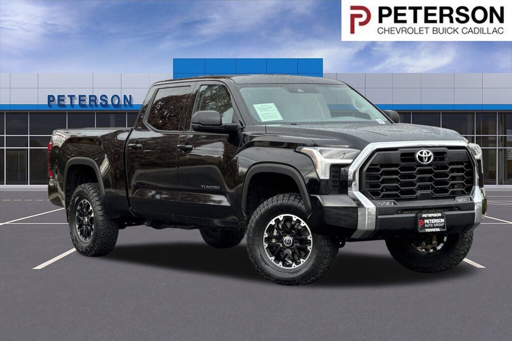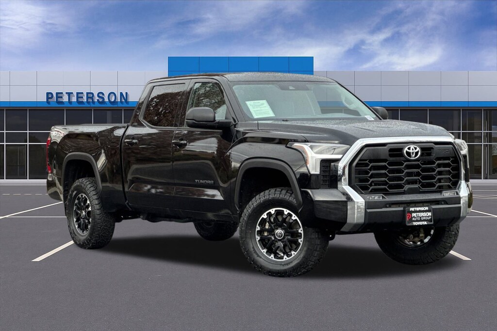 Recent Arrival! Engineered for action, our One Owner, No Accidents Reported 2023 Toyota Tundra SR5 CrewMax 4X4 with the TRD Off-Road Pack is ready to pick up the pace in Midnight Black Metallic! Motivated by a Twin-TurboCharged 3.4 Liter i-FORCE V6 that provides 389hp paired to a 10 Speed Automatic transmission. This Four Wheel Drive truck can also get a grip on your next adventure with our TRD Off-Road Premium Pack for an off-road suspension with Bilstein shocks, and it returns nearly 23mpg on the highway. Our Tundra's package turns up the volume on style by adding TRD alloy wheels, an exclusive grille design, a bold bedside decal, and skid plates, along with LED lighting, fog lamps, spray-on Bedliner, and an easy-lift/lower tailgate.